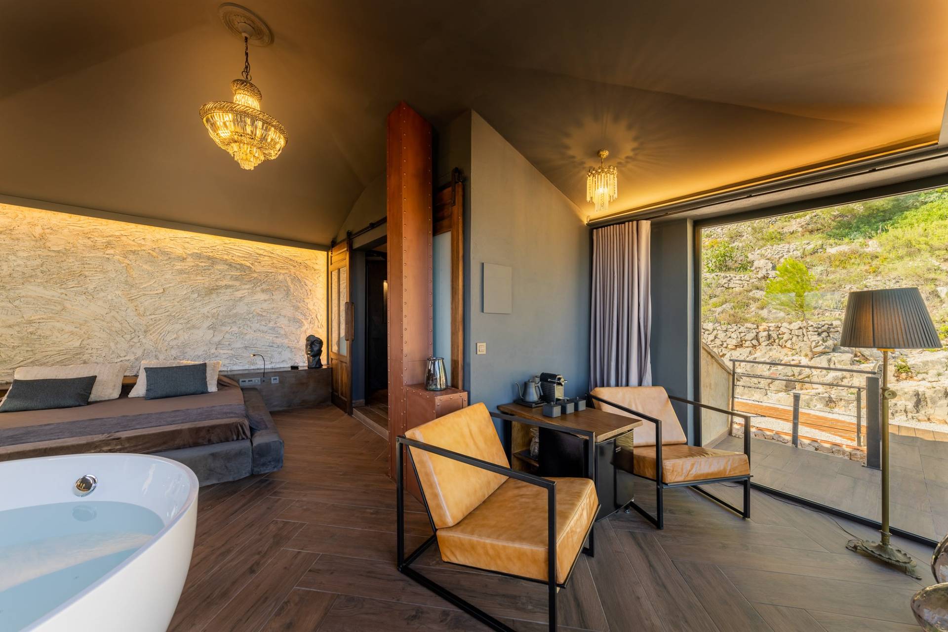 Willkommen in unserer Suite Superior, die speziell für unvergessliche Flitterwochenaufenthalte konzipiert wurde. Betreten Sie unsere geräumige und opulente Suite und lassen Sie sich von atemberaubenden Ausblicken auf sowohl die majestätischen Berge als auch das Meer verzaubern.