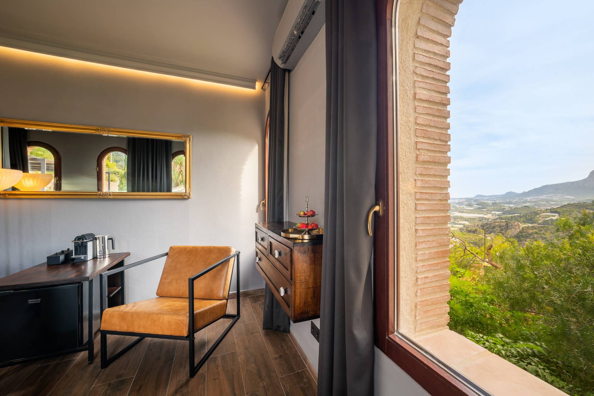 When we booked this place we knew it was going to be a special place, but we didn’t know it was going to be SO outstanding. The jacuzzi overlooking the mountains was definitely the highlight of our stay! We had a gorgeous room with bath and shower with views to the mountains, and you could even see a little bit of the sea in the distance with the skyscrapers of Benidorm. It made us so grateful that we were in a calm, relaxing place surrounded by nature.