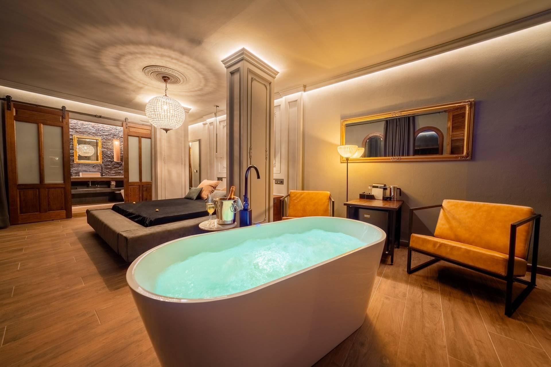 Bienvenido a nuestra exclusiva suite deluxe, donde el lujo y la serenidad se fusionan en un espacio único. Aquí, podrás deleitarte con vistas impresionantes a las montañas y la tranquilidad del mar. Sumérgete en el jacuzzi privado, rodeado de elegancia y relajación, mientras contemplas un paisaje que te dejará sin aliento.