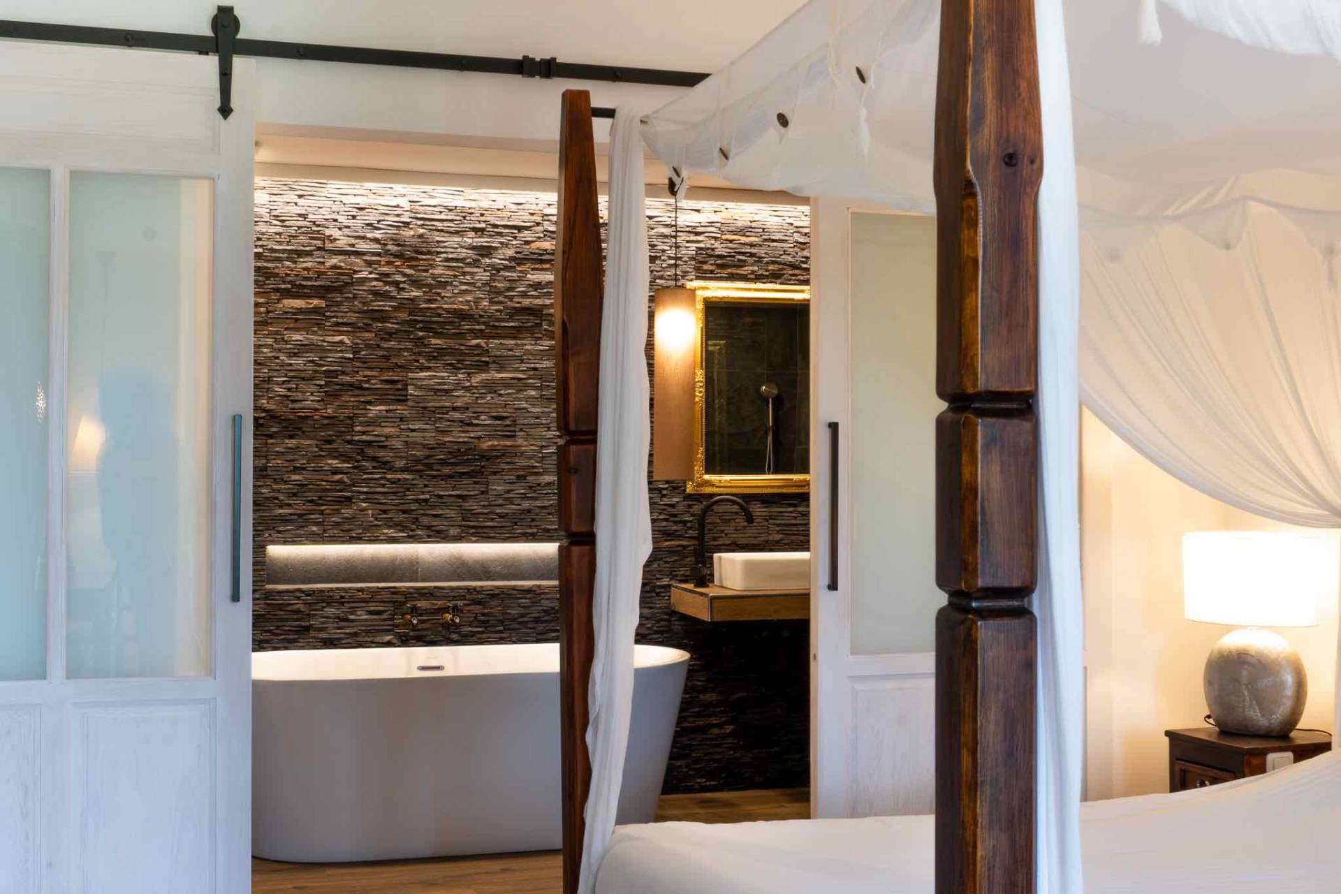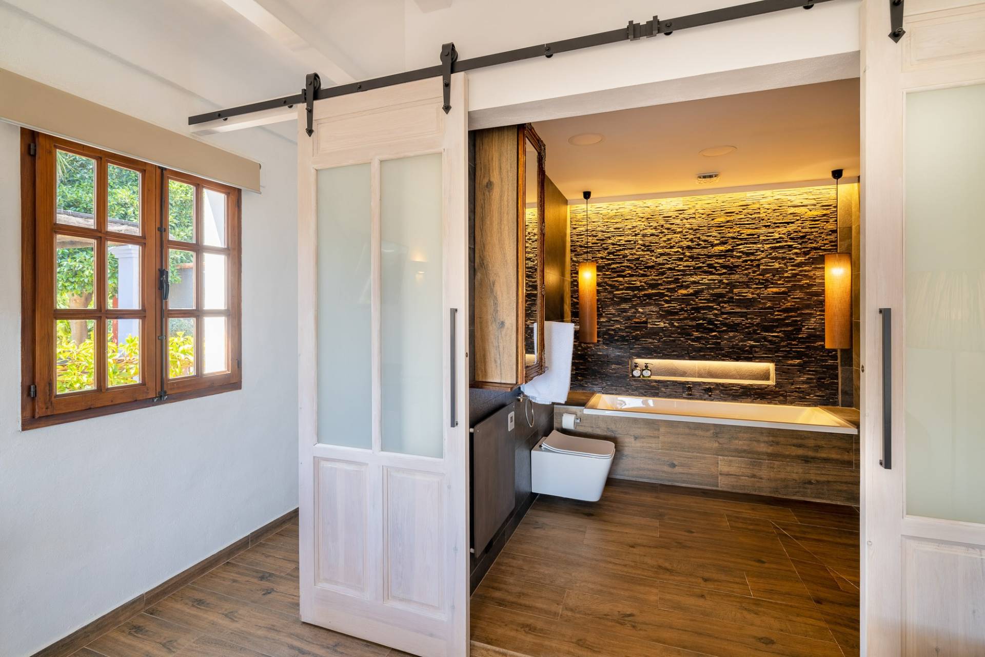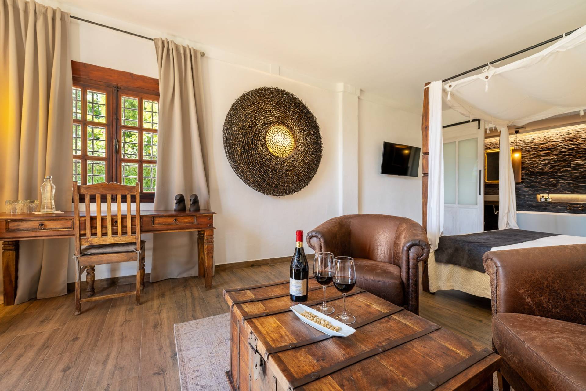 De suite combineert warme materialen, ambachtelijke details en een mediterrane uitstraling die uitnodigt tot ontspanning. De kamer beschikt over een comfortabel slaapgedeelte, een gezellige zithoek en een moderne privébadkamer met een ruime douche en een badkuip voor rustige, ontspannen momenten.