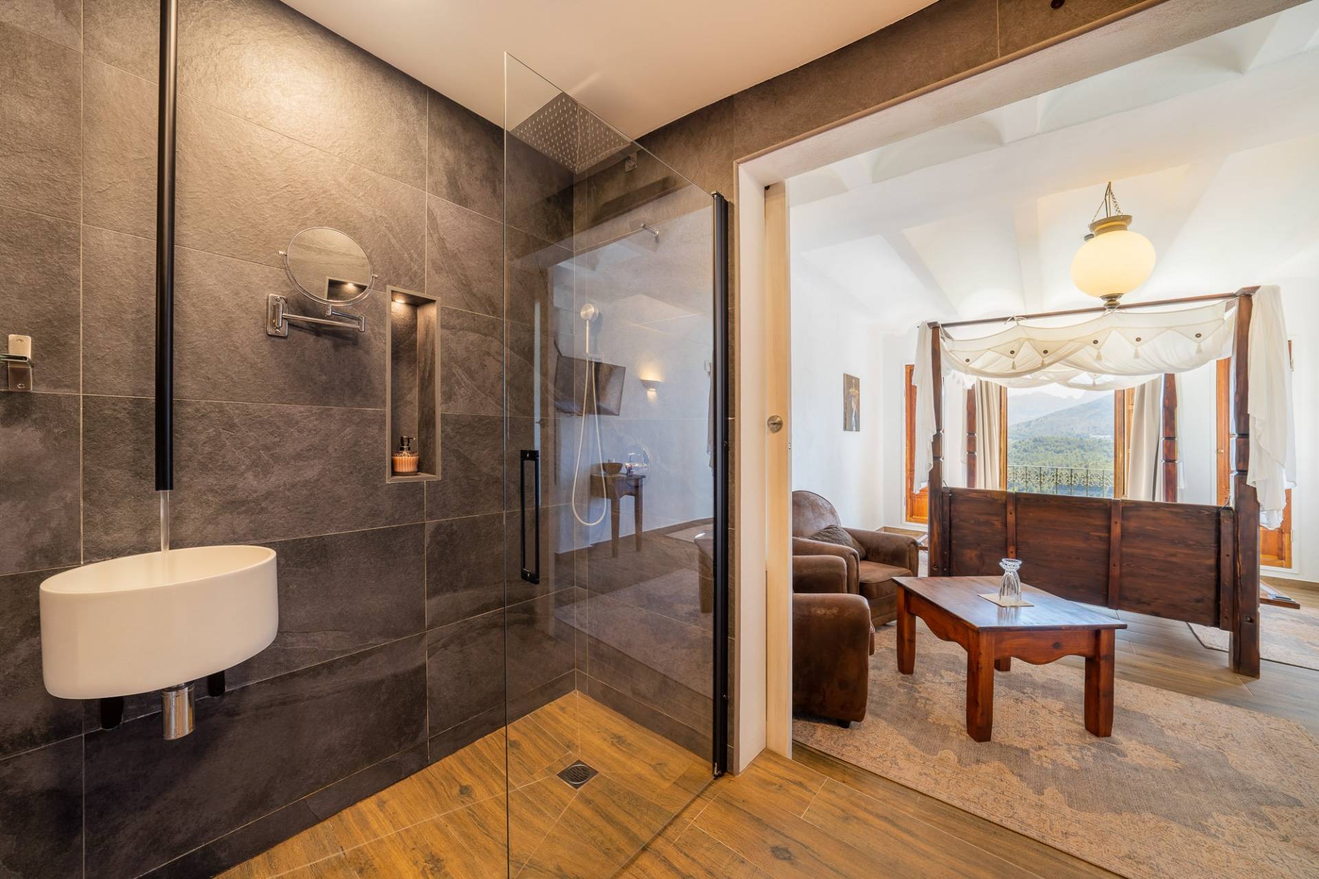 De Junior Suite van Finca el Tossal is een lichte en ruime kamer van 34 m², ideaal voor stellen die op zoek zijn naar rust, privacy en een natuurlijke sfeer midden in de bergen. Onze boutique-finca ligt in Bolulla, op slechts 20 minuten van Altea, en dicht bij de mooiste dorpjes, uitzichtpunten en wandelroutes in het binnenland van Alicante.
