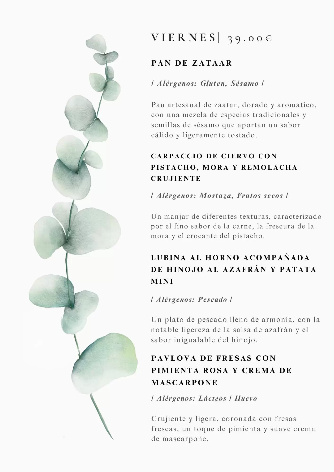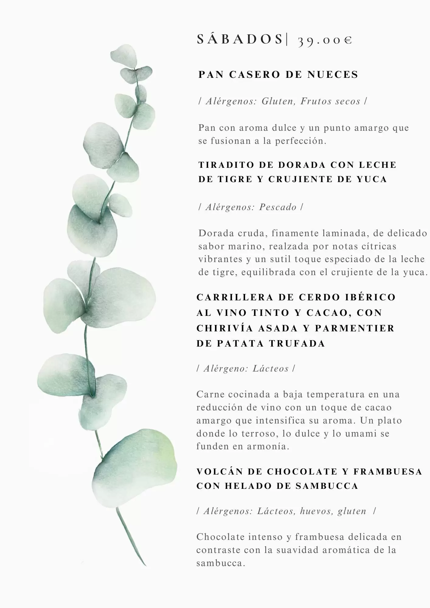 Nuestros menus tienen un precio de entre 30 y 39 euros por persona (IVA incl.)